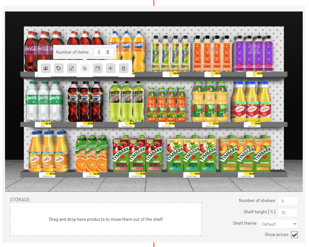 Drag-and-drop products, remove items, add new ones. Fine-tune your planogram visually before exporting.